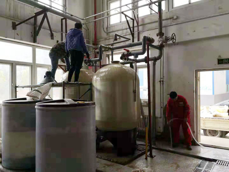 高碑店某換熱站鍋爐軟化水樹脂更換現(xiàn)場